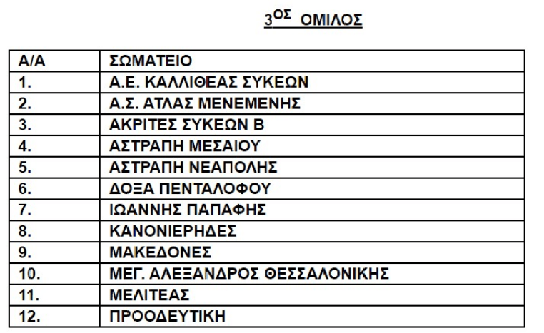 Ο καταρτισμός των ομίλων Α1, Α και Β ερασιτεχνικής